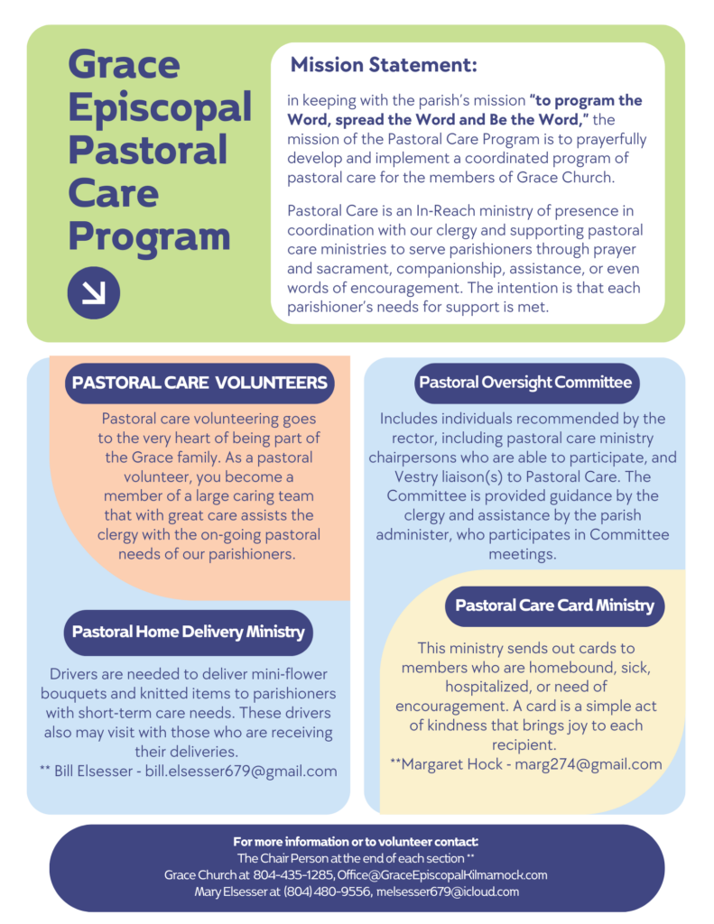 We are blessed by God’s grace and called to build a vibrant, growing congregation that shares the Hope of the Gospel of Jesus Christ and proclaims in word and deed the values of His Kingdom for people in our community and beyond. Together, we are called to love and serve.